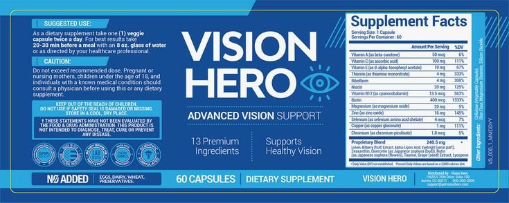 Vision Hero is a dietary supplement specifically designed to improve eye health and restore vision. It features a powerful blend of 11 scientifically-proven ingredients, each carefully selected to address various aspects of eye health, including protecting against age-related vision decline, improving circulation to the eyes, and boosting the body’s natural repair processes through Adult Repair Stem Cells.