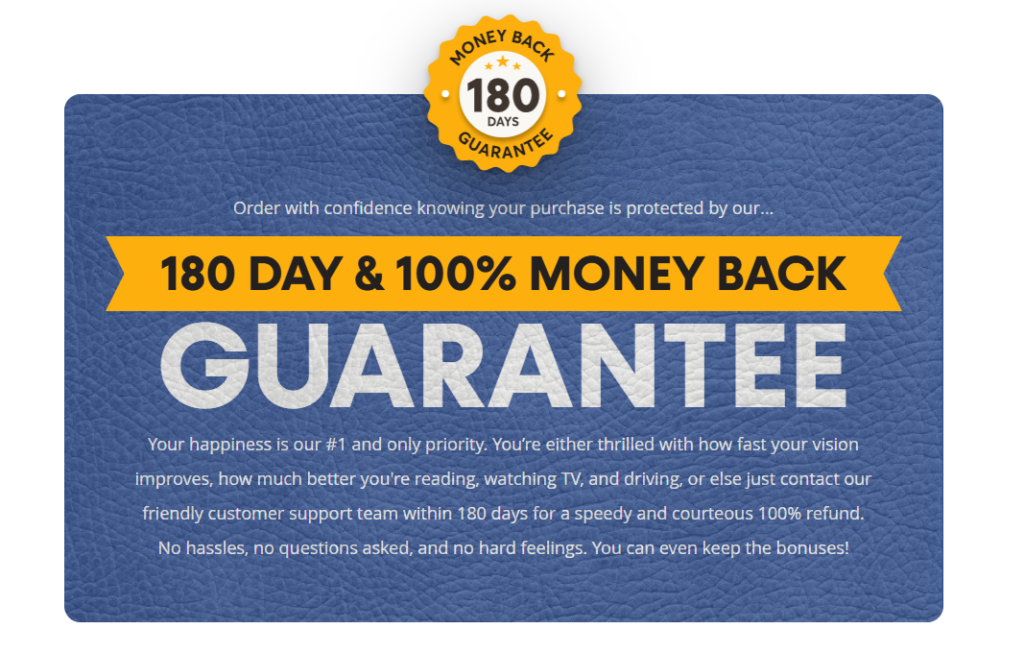 Vision Hero offers a 100% money-back guarantee for 180 days from the date of purchase. If you are not completely satisfied with the product or its results within this period, you can contact customer support via the toll-free number or email. A full refund will be issued within 48 hours after the product is returned.